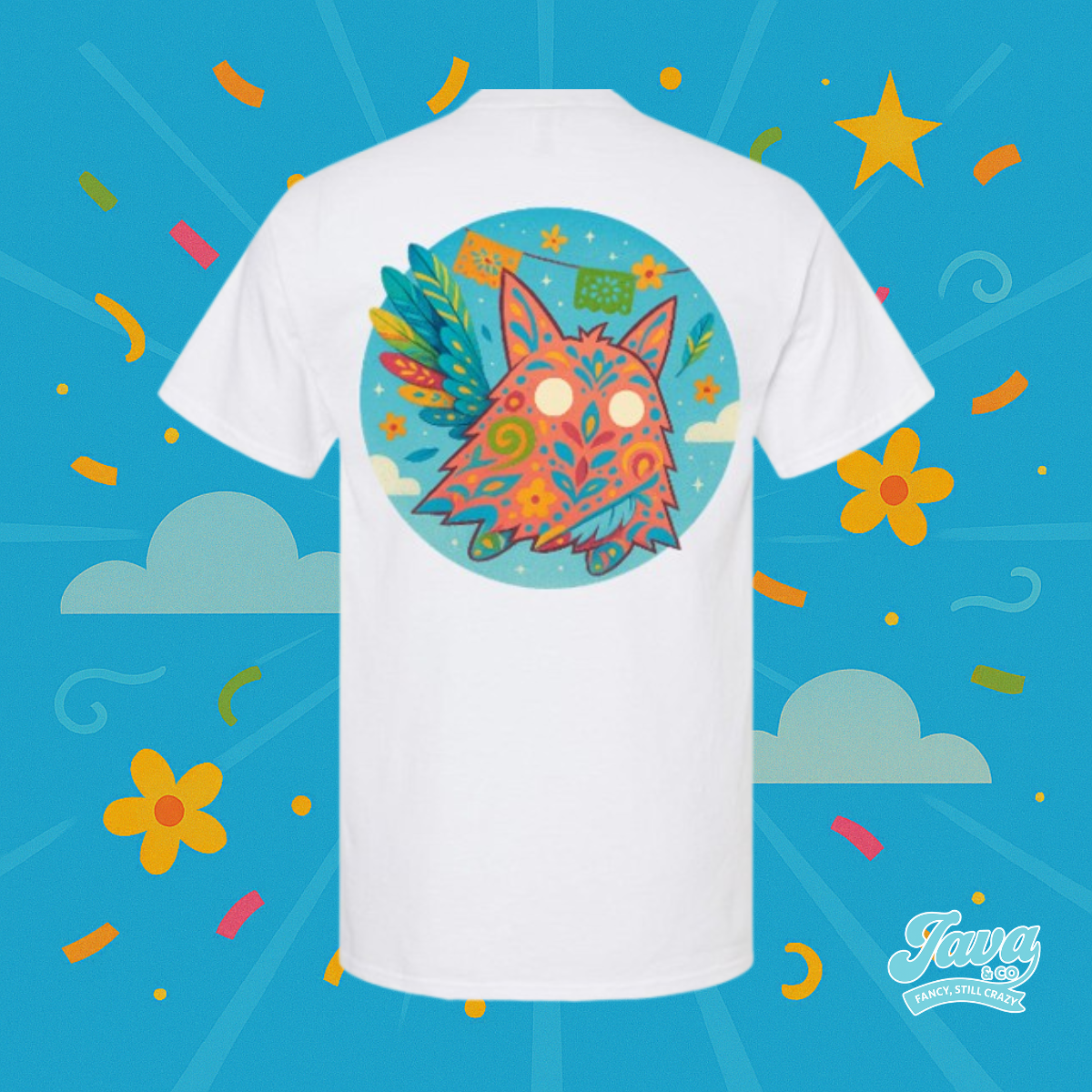 Java se transforma en un espíritu fantástico lleno de color y magia. Inspirado en los alebrijes mexicanos, este diseño celebra la tradición, la creatividad y la conexión con lo místico. Detalles florales, papel picado y colores vibrantes hacen de esta pieza una explosión de cultura y estilo.