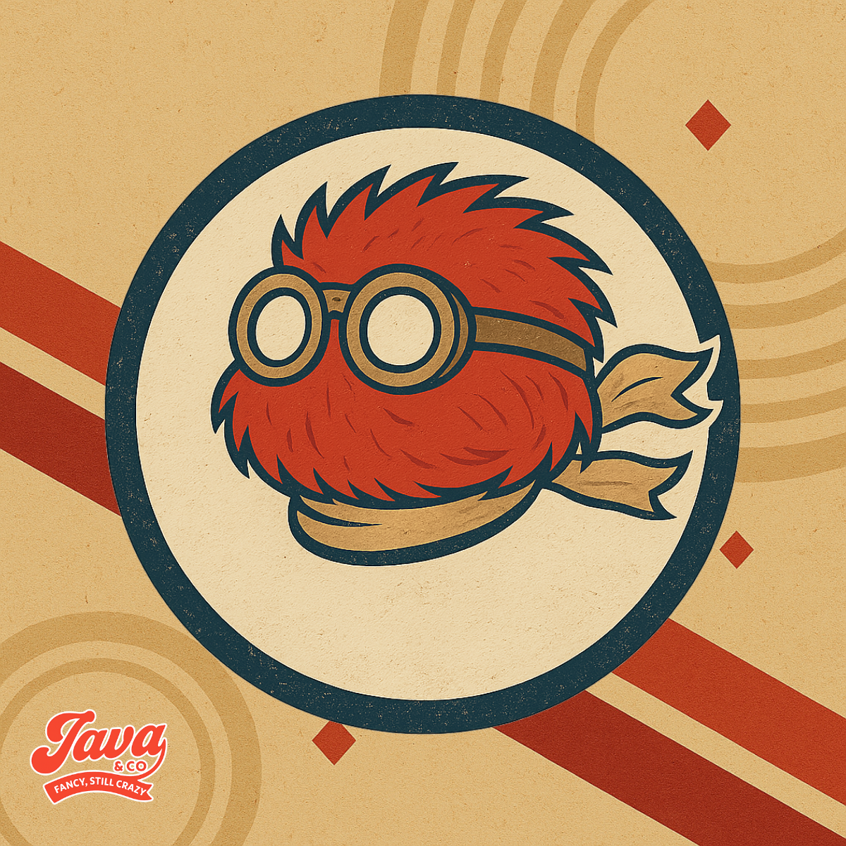 Java pisa el acelerador a través del desierto con estilo. Este diseño de la colección Vroom muestra a Java en su versión más audaz: pelaje rojo encendido, auto clásico y mirada fija en la meta. Inspirado en los rallies de antaño, es perfecto para quienes viven con adrenalina.