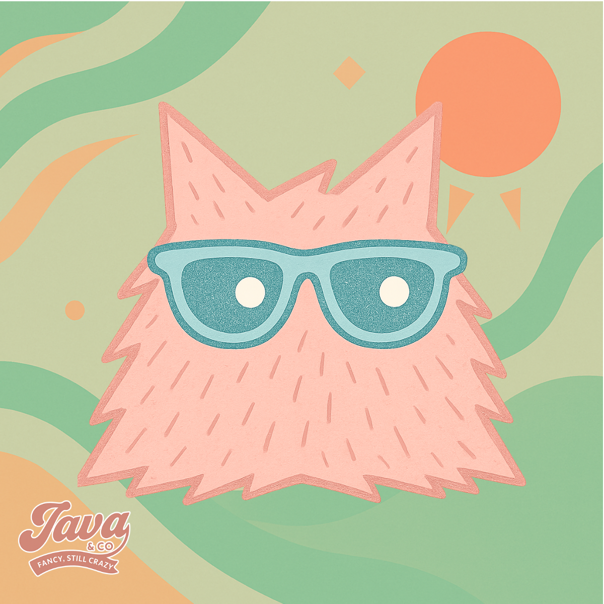 Java se toma su tiempo, y tú también deberías. Este diseño nos recuerda que la vida no siempre tiene que ir a mil por hora. Con tonos frutales, un atardecer de ensueño y un puesto de bebidas Java & Co., esta pieza es un homenaje al arte de relajarse con estilo.